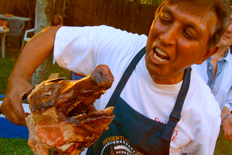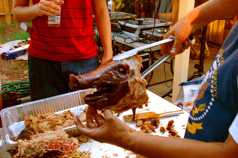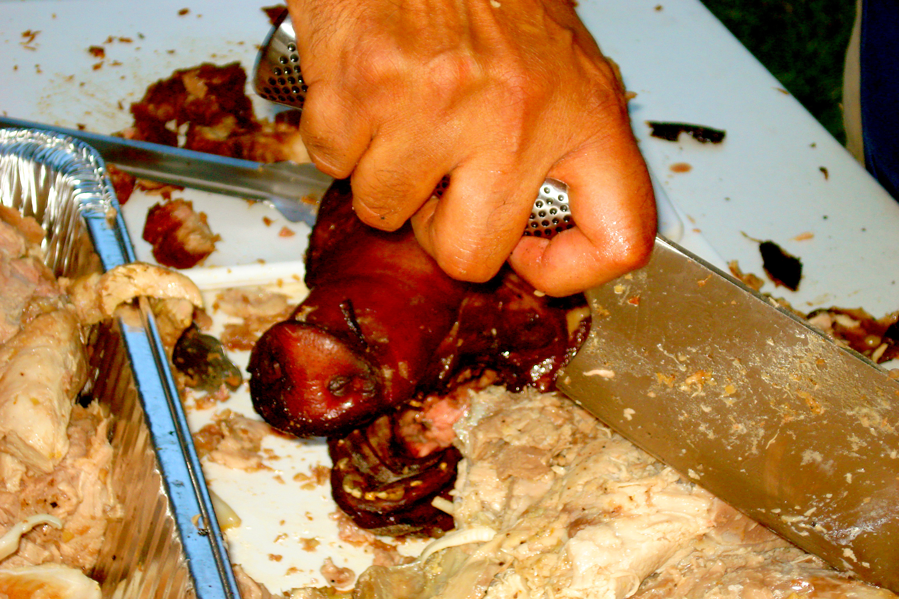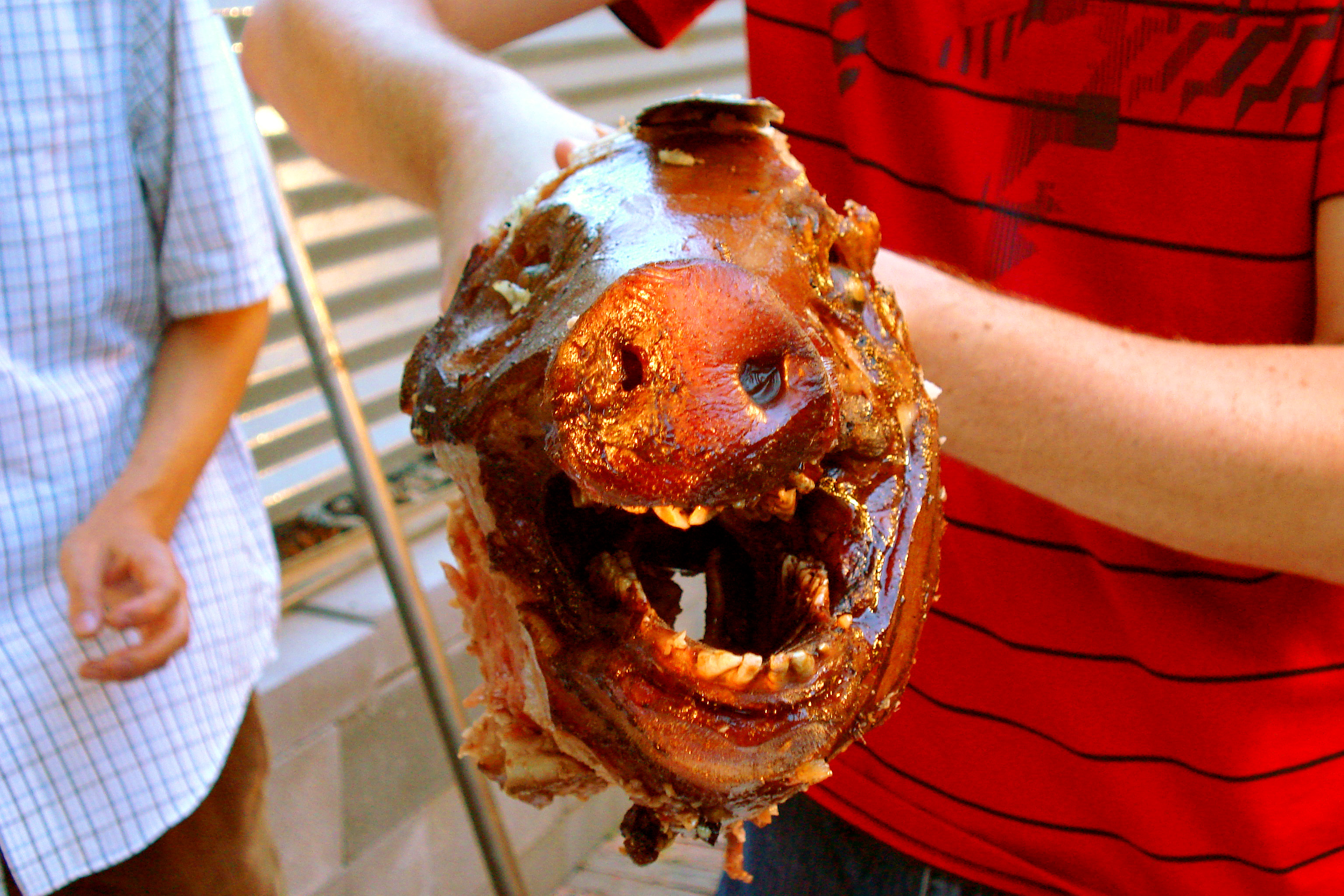These are pictures with too much pig's head in them. I've put them o a separate page, so those with weaker stomachs don't have to look at closeups of dead animal head. Some are kind of horror show, so don't say I didn't warn you.